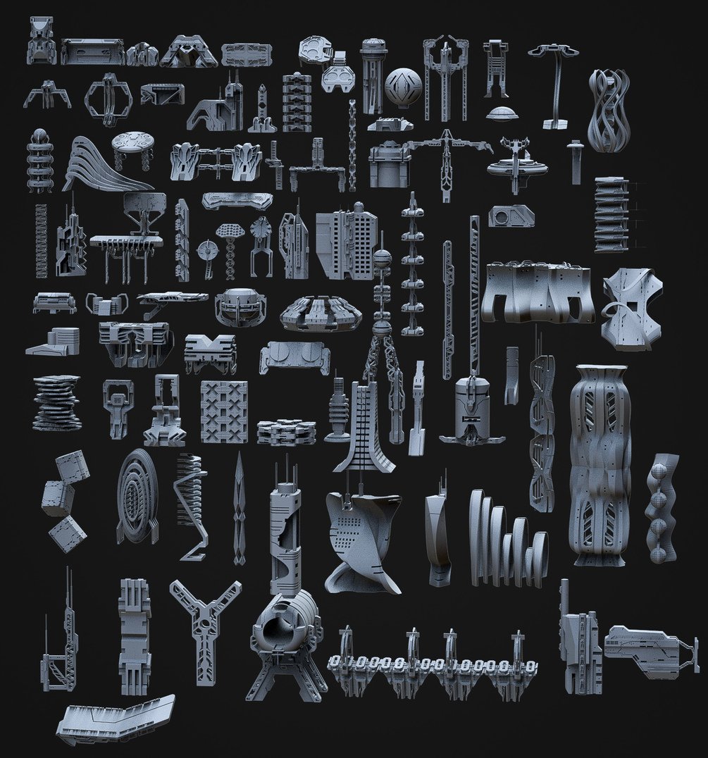 This set includes ninety-one modular (Non-Subd based polygonal) models with hi polycount (40 mil. in total) to hold up very close renders. These pieces can be useful for concept art, matte painting or assembling a complete cityscape from scratch. This product is delivered only in Zbrush IMM format due to hi-polycount. Enjoy.